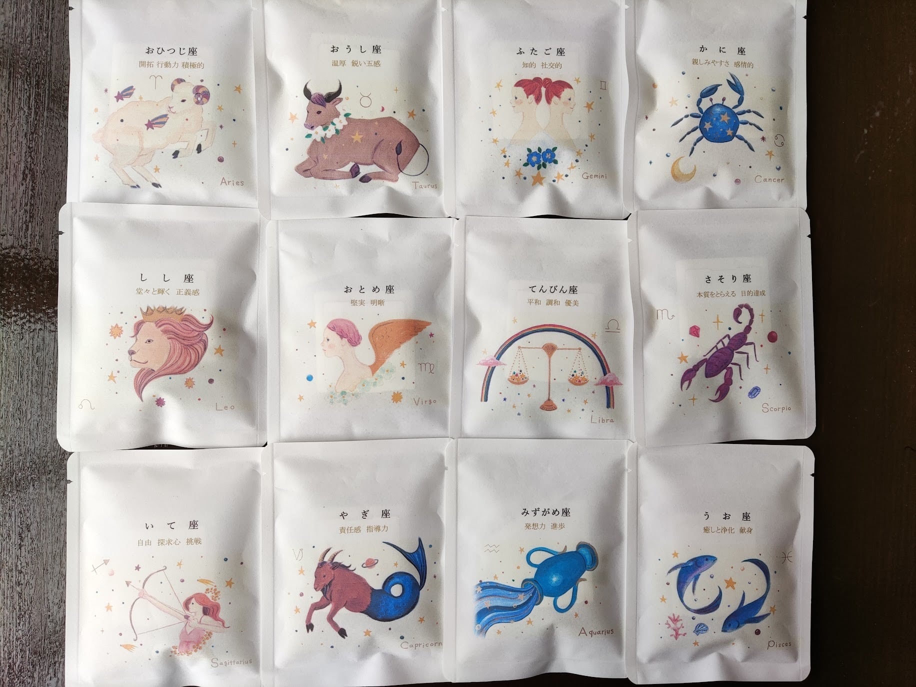 12星座の性格別ドリップコーヒー。星座それぞれが持つ性格に合わせたコーヒーは、自分の星座はもちろん、なりたい性格の星座コーヒーを選んで、なりたい自分に近づくのも楽しい♪