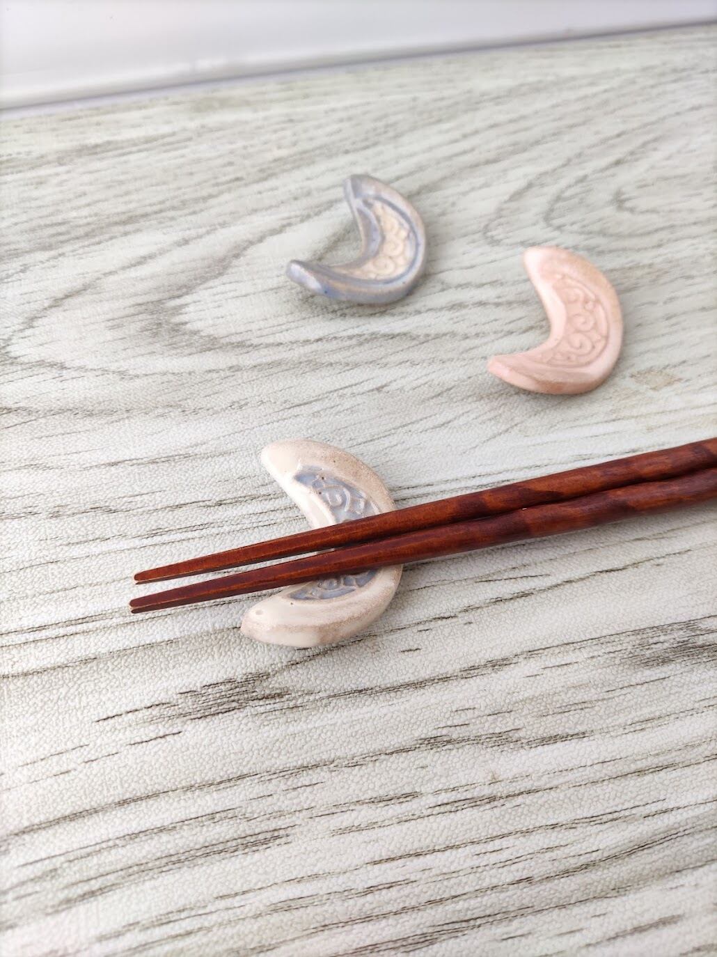 月にカーブをつけていますので、安定して箸を置くことができます。